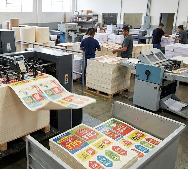 Producimos impresión de afiches publicitarios para vitrinas, góndolas, pasillos, cajas y exhibiciones.